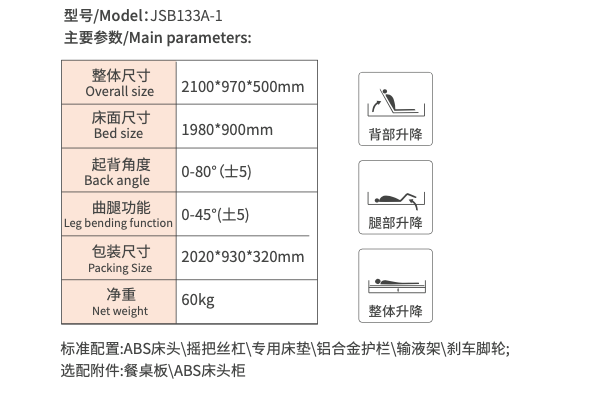 ABS 3 cranks hospital bed