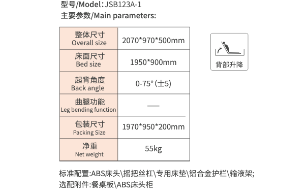 ABS manual punching single-crank hospital bed