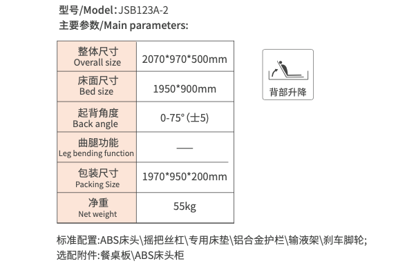 ABS manual punching single-crank hospital bed